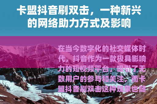 在当今数字化的社交媒体时代,抖音作为一款极具影响力的短视频平台,吸引了无数用户的参与和关注,而卡盟抖音刷双击这种现象也随之悄然兴起,成为了一个值得探讨的话题。