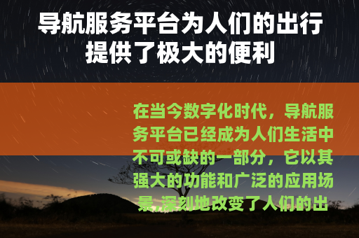 在当今数字化时代,导航服务平台已经成为人们生活中不可或缺的一部分,它以其强大的功能和广泛的应用场景,深刻地改变了人们的出行方式和生活习惯。