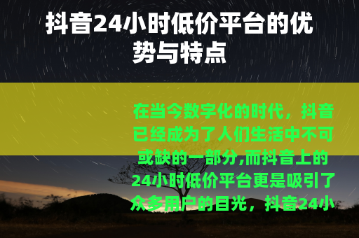 在当今数字化的时代,抖音已经成为了人们生活中不可或缺的一部分,而抖音上的24小时低价平台更是吸引了众多用户的目光。