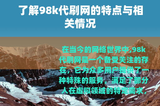 在当今的网络世界中,98k代刷网是一个备受关注的存在,它为众多用户提供了一种特殊的服务,满足了部分人在虚拟领域的特定需求。