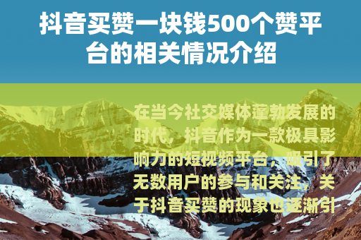 在当今社交媒体蓬勃发展的时代,抖音作为一款极具影响力的短视频平台,吸引了无数用户的参与和关注,关于抖音买赞的现象也逐渐引起了人们的注意,特别是一些声称一块钱能买到500个赞的平台更是成为了不少人热议的话题。