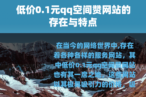 在当今的网络世界中,存在着各种各样的服务网站,其中低价0.1元qq空间赞网站也有其一席之地,这些网站以其极具吸引力的价格,吸引着众多想要提升自己qq空间人气的用户。