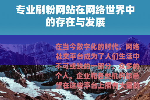 在当今数字化的时代,网络社交平台成为了人们生活中不可或缺的一部分,众多的个人、企业和各类机构都希望在这些平台上拥有大量的粉丝,以提高自身的知名度和影响力,而专业刷粉网站也就在这样的背景下应运而生。