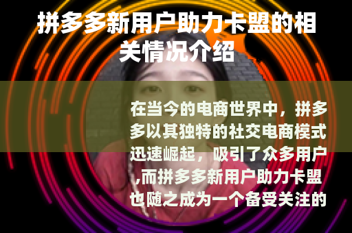在当今的电商世界中,拼多多以其独特的社交电商模式迅速崛起,吸引了众多用户,而拼多多新用户助力卡盟也随之成为一个备受关注的话题。