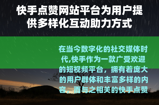 在当今数字化的社交媒体时代,快手作为一款广受欢迎的短视频平台,拥有着庞大的用户群体和丰富多样的内容,而与之相关的快手点赞网站平台也应运而生,为用户在快手的互动体验增添了新的维度。