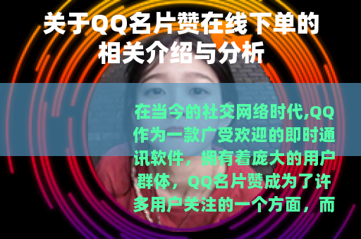 随着互联网技术的不断发展,QQ名片赞在线下单的服务也在不断完善和创新,我们有理由相信,它将在社交网络领域中继续发挥其独特的作用,为用户带来更多的便利和价值,无论是对于普通用户还是对于相关从业者来说,都应该积极关注其发展动态,不断适应和利用这种新的社交网络服务模式,共同推动社交网络的健康发展。