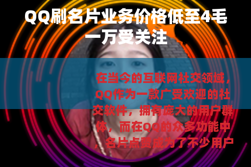 在当今的互联网社交领域,QQ作为一款广受欢迎的社交软件,拥有庞大的用户群体,而在QQ的众多功能中,名片点赞成为了不少用户关注的一个方面,一种QQ刷名片的业务在网络上悄然兴起,其价格低至4毛一万的点赞量,引起了众多QQ用户的兴趣。