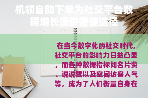 在当今数字化的社交时代,社交平台的影响力日益凸显,而各种数据指标如名片赞、说说赞以及空间访客人气等,成为了人们衡量自身在社交网络中受欢迎程度的重要标准,机领自助下单平台的出现,为众多用户提供了一个轻松提升这些数据的机会。
