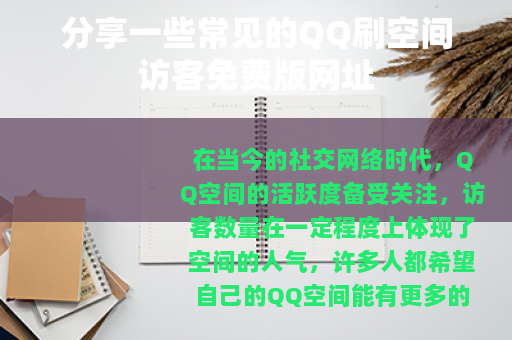 在当今的社交网络时代,QQ空间的活跃度备受关注,访客数量在一定程度上体现了空间的人气,许多人都希望自己的QQ空间能有更多的访客,从而让自己的动态能被更多人看到,分享的生活点滴能得到更多的回应,一些QQ刷空间访客的免费版网址便应运而生,受到了不少人的关注。