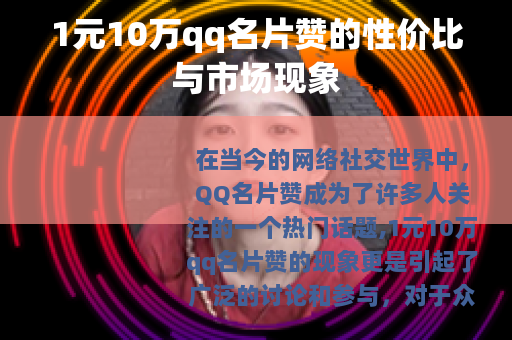 在当今的网络社交世界中,QQ名片赞成为了许多人关注的一个热门话题,1元10万qq名片赞的现象更是引起了广泛的讨论和参与。
