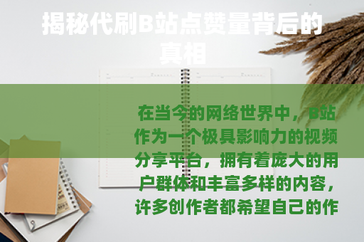在当今的网络世界中,B站作为一个极具影响力的视频分享平台,拥有着庞大的用户群体和丰富多样的内容,许多创作者都希望自己的作品能够获得更多的点赞量,从而提高曝光度和影响力,有一种现象逐渐兴起,那就是代刷B站点赞量的服务。