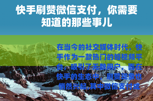 在当今的社交媒体时代,快手作为一款热门的短视频平台,吸引了无数用户,而在快手的生态中,刷赞现象也悄然兴起,其中微信支付成为了一种常见的交易方式。