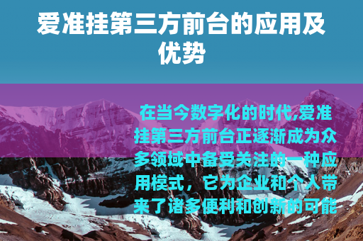 在当今数字化的时代,爱准挂第三方前台正逐渐成为众多领域中备受关注的一种应用模式,它为企业和个人带来了诸多便利和创新的可能性,开启了一个全新的发展篇章。