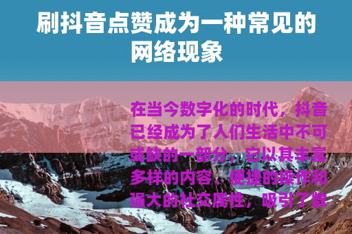在当今数字化的时代,抖音已经成为了人们生活中不可或缺的一部分,它以其丰富多样的内容、便捷的操作和强大的社交属性,吸引了数亿用户,而在抖音的生态中,刷抖音点赞也逐渐成为了一种备受关注的行为。
