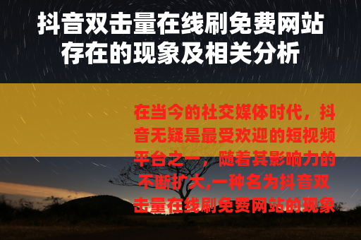 在当今的社交媒体时代,抖音无疑是最受欢迎的短视频平台之一,随着其影响力的不断扩大,一种名为抖音双击量在线刷免费网站的现象也逐渐进入了人们的视野。