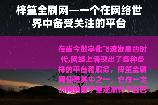 在当今数字化飞速发展的时代,网络上涌现出了各种各样的平台和服务,梓笙全刷网便是其中之一,它在一定的网络圈子里逐渐有了自己的知名度,吸引了不少用户的目光。
