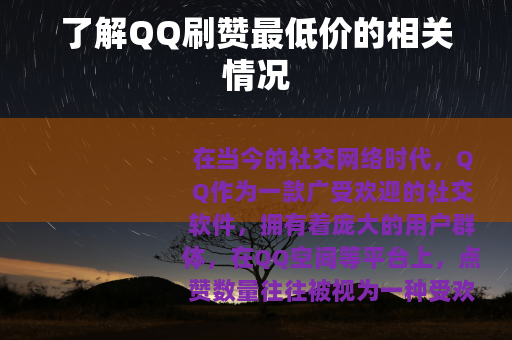 在当今的社交网络时代,QQ作为一款广受欢迎的社交软件,拥有着庞大的用户群体,在QQ空间等平台上,点赞数量往往被视为一种受欢迎程度的象征,不少人对QQ刷赞产生了兴趣,而其中最低价的刷赞服务更是吸引了众多目光。