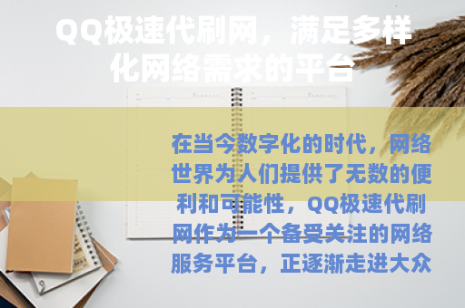 在当今数字化的时代,网络世界为人们提供了无数的便利和可能性,QQ极速代刷网作为一个备受关注的网络服务平台,正逐渐走进大众的视野,为用户带来了独特的体验和价值。
