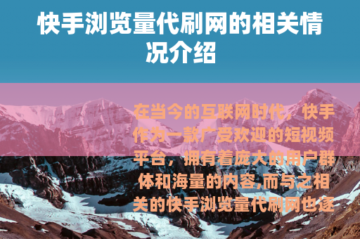 在当今的互联网时代,快手作为一款广受欢迎的短视频平台,拥有着庞大的用户群体和海量的内容,而与之相关的快手浏览量代刷网也逐渐进入了人们的视野。
