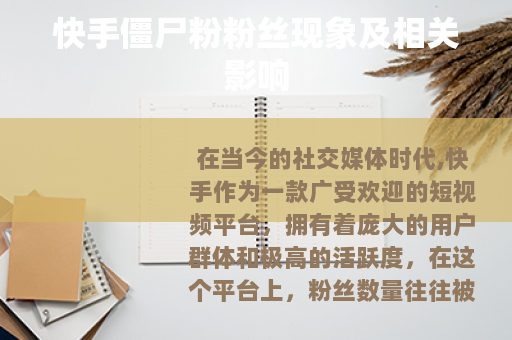 在当今的社交媒体时代,快手作为一款广受欢迎的短视频平台,拥有着庞大的用户群体和极高的活跃度,在这个平台上,粉丝数量往往被视为衡量一个用户或创作者影响力的重要指标之一,而快手僵尸粉粉丝的存在,也成为了一个值得关注的现象。