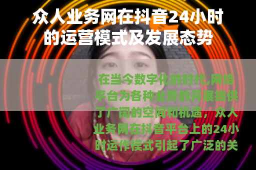 在当今数字化的时代,网络平台为各种业务的开展提供了广阔的空间和机遇,众人业务网在抖音平台上的24小时运作模式引起了广泛的关注。