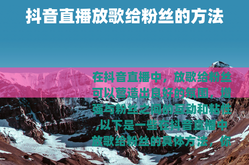 在抖音直播中,放歌给粉丝可以营造出良好的氛围,增强与粉丝之间的互动和粘性,以下是一些在抖音直播中放歌给粉丝的具体方法。