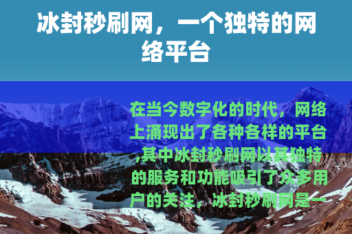 在当今数字化的时代,网络上涌现出了各种各样的平台,其中冰封秒刷网以其独特的服务和功能吸引了众多用户的关注。
