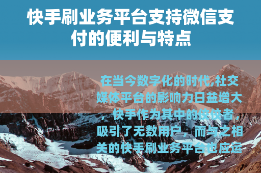 在当今数字化的时代,社交媒体平台的影响力日益增大,快手作为其中的佼佼者,吸引了无数用户,而与之相关的快手刷业务平台也应运而生,其中一些平台支持微信支付,为用户带来了独特的体验和便利。