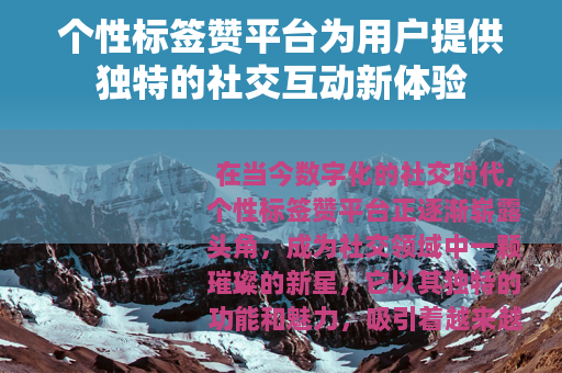 在当今数字化的社交时代,个性标签赞平台正逐渐崭露头角,成为社交领域中一颗璀璨的新星,它以其独特的功能和魅力,吸引着越来越多的用户,为人们的社交生活增添了新的色彩和乐趣。