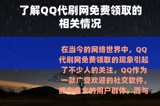 在当今的网络世界中,QQ代刷网免费领取的现象引起了不少人的关注,QQ作为一款广受欢迎的社交软件,拥有庞大的用户群体,而与之相关的各种服务和需求也应运而生,QQ代刷网免费领取就是其中之一。