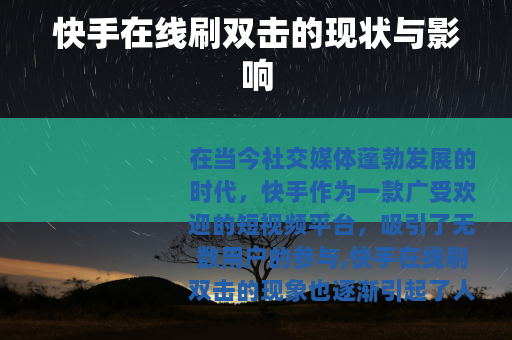 在当今社交媒体蓬勃发展的时代,快手作为一款广受欢迎的短视频平台,吸引了无数用户的参与,快手在线刷双击的现象也逐渐引起了人们的关注。