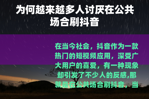 在当今社会,抖音作为一款热门的短视频应用,深受广大用户的喜爱,有一种现象却引发了不少人的反感,那就是在公共场合刷抖音。