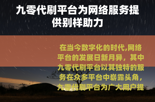 在当今数字化的时代,网络平台的发展日新月异,其中九零代刷平台以其独特的服务在众多平台中崭露头角,九零代刷平台为广大用户提供了一系列多样化的代刷服务,满足了不同用户在网络世界中的各种需求。