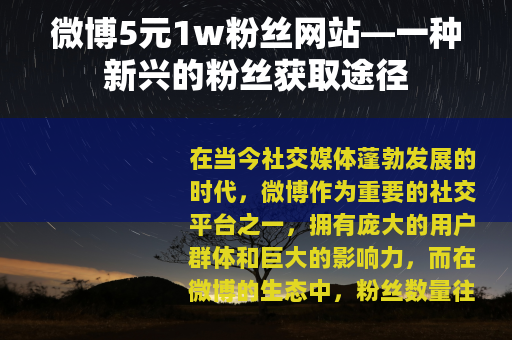微博5元1w粉丝网站的出现是社交媒体发展过程中的一个现象,它既反映了用户对粉丝数量的追求和市场的需求,也凸显了在虚拟社交世界中数据真实性和价值的重要性,用户在面对这类网站时,要权衡利弊,做出明智的选择,以确保自己在微博上的发展之路能够走得更加稳健和可持续。