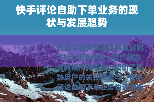 在当今社交媒体蓬勃发展的时代,快手作为一款广受欢迎的短视频平台,吸引了无数用户的关注和参与,快手评论自助下单业务也逐渐崭露头角,成为了一个值得探讨的话题。