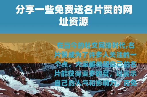 需注意的是,在实际网络环境中,部分免费送名片赞的网址可能存在违反平台规定或其他潜在风险,在使用此类服务时应谨慎评估并确保符合相关规定和道德准则 ,以上内容仅为基于设定需求的创作示例,不构成对任何特定行为或网站的推荐或认可。