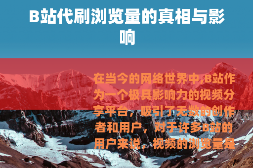 在当今的网络世界中,B站作为一个极具影响力的视频分享平台,吸引了无数的创作者和用户,对于许多B站的用户来说,视频的浏览量是衡量其作品受欢迎程度的一个重要指标,一种名为B站代刷浏览量的现象逐渐兴起,引发了人们的广泛关注。