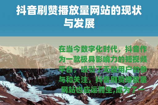 在当今数字化时代,抖音作为一款极具影响力的短视频平台,吸引了无数用户的参与和关注,抖音刷赞播放量网站也应运而生,成为了一个备受瞩目的现象。