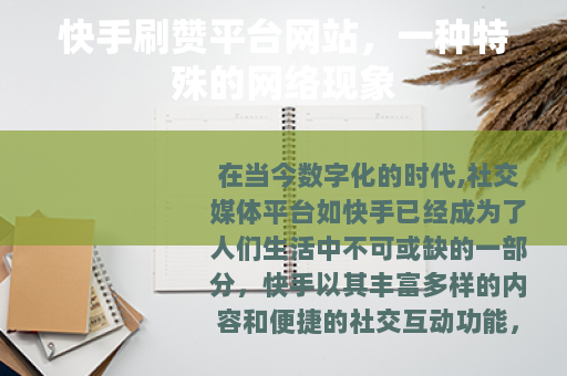 在当今数字化的时代,社交媒体平台如快手已经成为了人们生活中不可或缺的一部分,快手以其丰富多样的内容和便捷的社交互动功能,吸引了数以亿计的用户,而与之相伴而生的,是一些快手刷赞平台网站的出现。