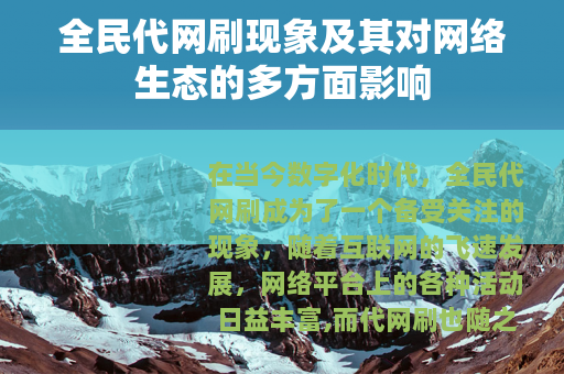 在当今数字化时代,全民代网刷成为了一个备受关注的现象,随着互联网的飞速发展,网络平台上的各种活动日益丰富,而代网刷也随之悄然兴起。