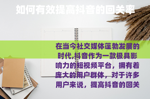 在当今社交媒体蓬勃发展的时代,抖音作为一款极具影响力的短视频平台,拥有着庞大的用户群体,对于许多用户来说,提高抖音的回关率是一个非常重要的目标,它不仅能增加粉丝之间的互动,还能进一步提升自己在平台上的影响力,究竟该如何提高抖音的回关率呢?以下是一些实用的方法。