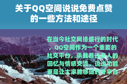 在当今社交网络盛行的时代,QQ空间作为一个重要的社交平台,承载着许多人的回忆与情感交流,说说功能更是让大家能够随时分享自己的生活点滴、心情感悟等,而说说的点赞数量在一定程度上也反映了其受欢迎程度和关注度,很多人都希望自己的说说能获得更多的点赞,我们就来聊一聊QQ空间说说免费点赞的那些事儿。