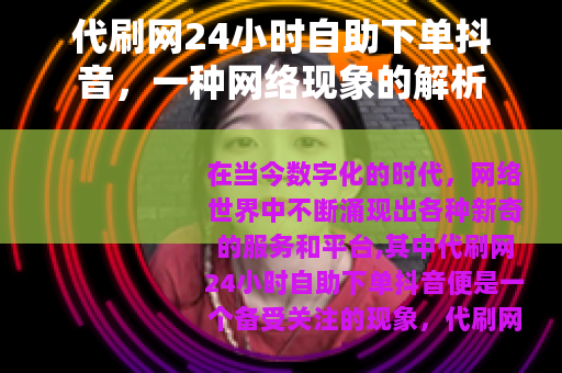 在当今数字化的时代,网络世界中不断涌现出各种新奇的服务和平台,其中代刷网24小时自助下单抖音便是一个备受关注的现象。