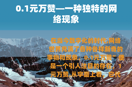 在当今数字化的时代,网络世界充满了各种各样新奇的事物和现象,0.1元万赞”便是一个引人注目的存在。