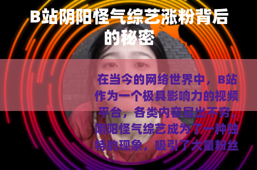在当今的网络世界中,B站作为一个极具影响力的视频平台,各类内容层出不穷,阴阳怪气综艺成为了一种独特的现象,吸引了大量粉丝,呈现出一片繁荣的景象。