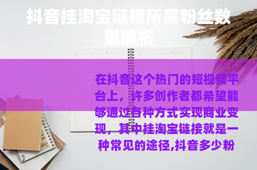 在抖音这个热门的短视频平台上,许多创作者都希望能够通过各种方式实现商业变现,其中挂淘宝链接就是一种常见的途径,抖音多少粉丝可以挂淘宝链接呢?