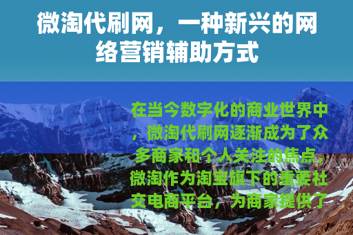 在当今数字化的商业世界中,微淘代刷网逐渐成为了众多商家和个人关注的焦点,微淘作为淘宝旗下的重要社交电商平台,为商家提供了一个与消费者直接互动、推广商品的良好渠道,而微淘代刷网的出现,则在一定程度上为商家在微淘平台上的发展提供了新的思路和助力。