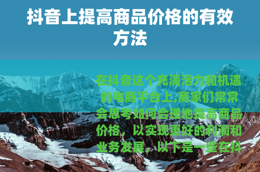 在抖音这个充满活力和机遇的电商平台上,商家们常常会思考如何合理地提高商品价格,以实现更好的利润和业务发展,以下是一些在抖音上提高商品价格的实用策略。