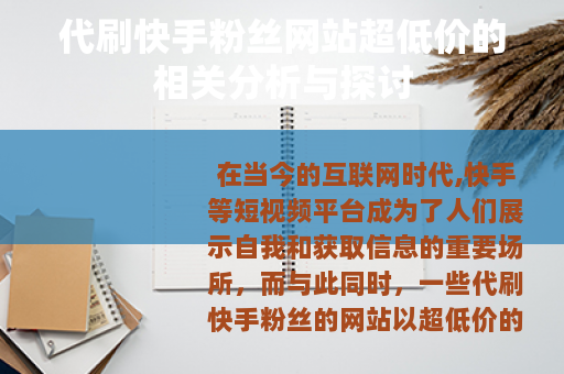 在当今的互联网时代,快手等短视频平台成为了人们展示自我和获取信息的重要场所,而与此同时,一些代刷快手粉丝的网站以超低价的形式出现在大众视野中,引发了不少人的关注。