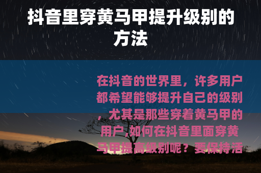 在抖音的世界里,许多用户都希望能够提升自己的级别,尤其是那些穿着黄马甲的用户,如何在抖音里面穿黄马甲提高级别呢?